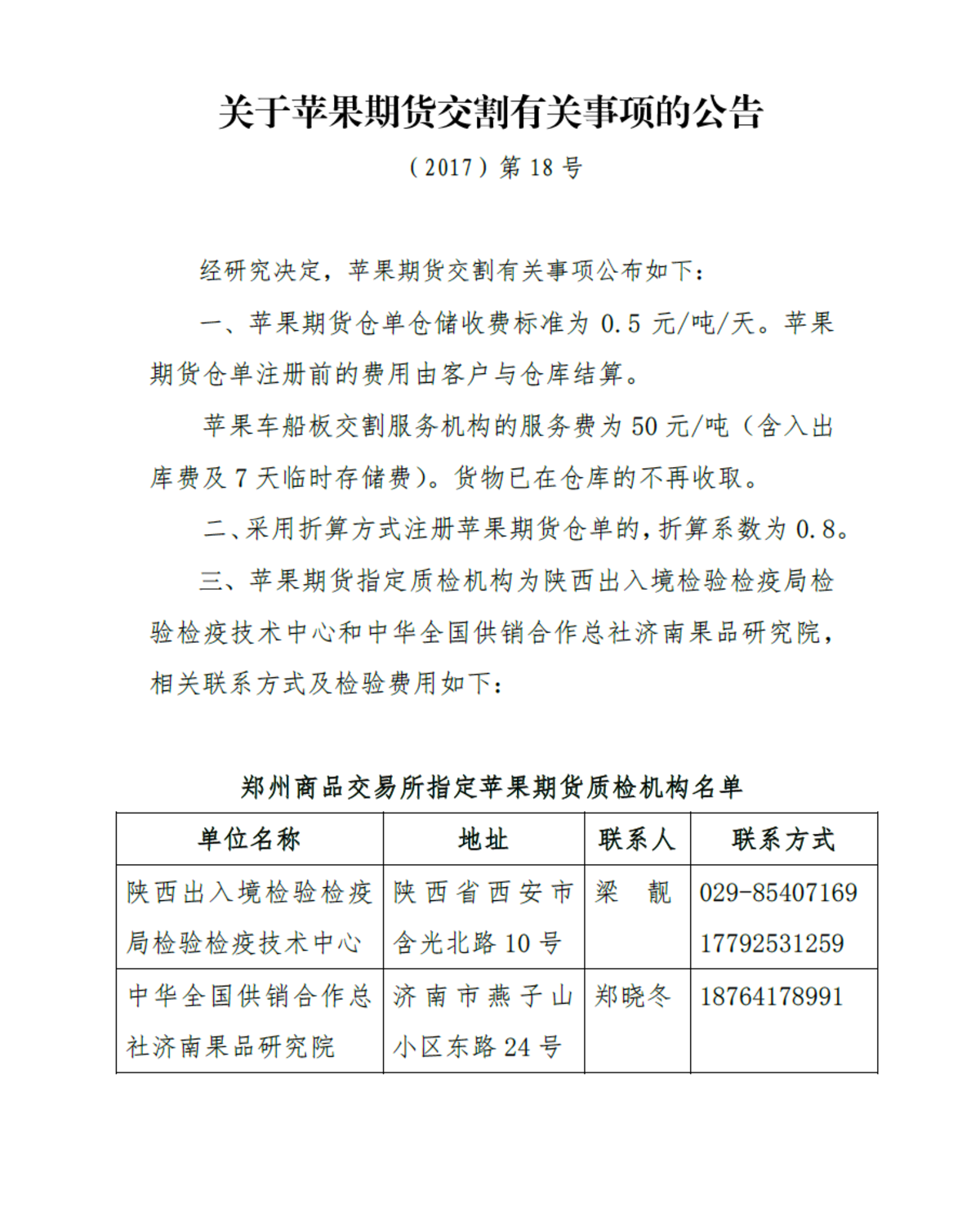 关于苹果期货交割有关事项的公告