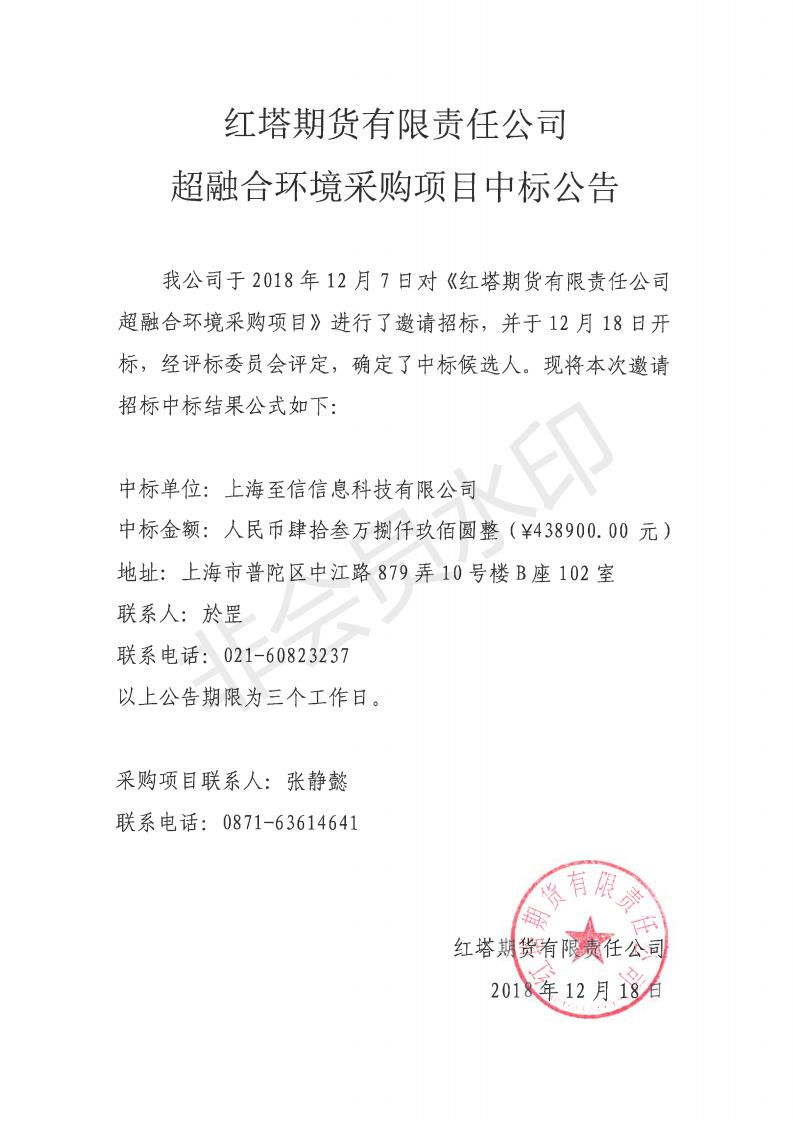 红塔期货有限责任公司超融合环境采购项目中标公告