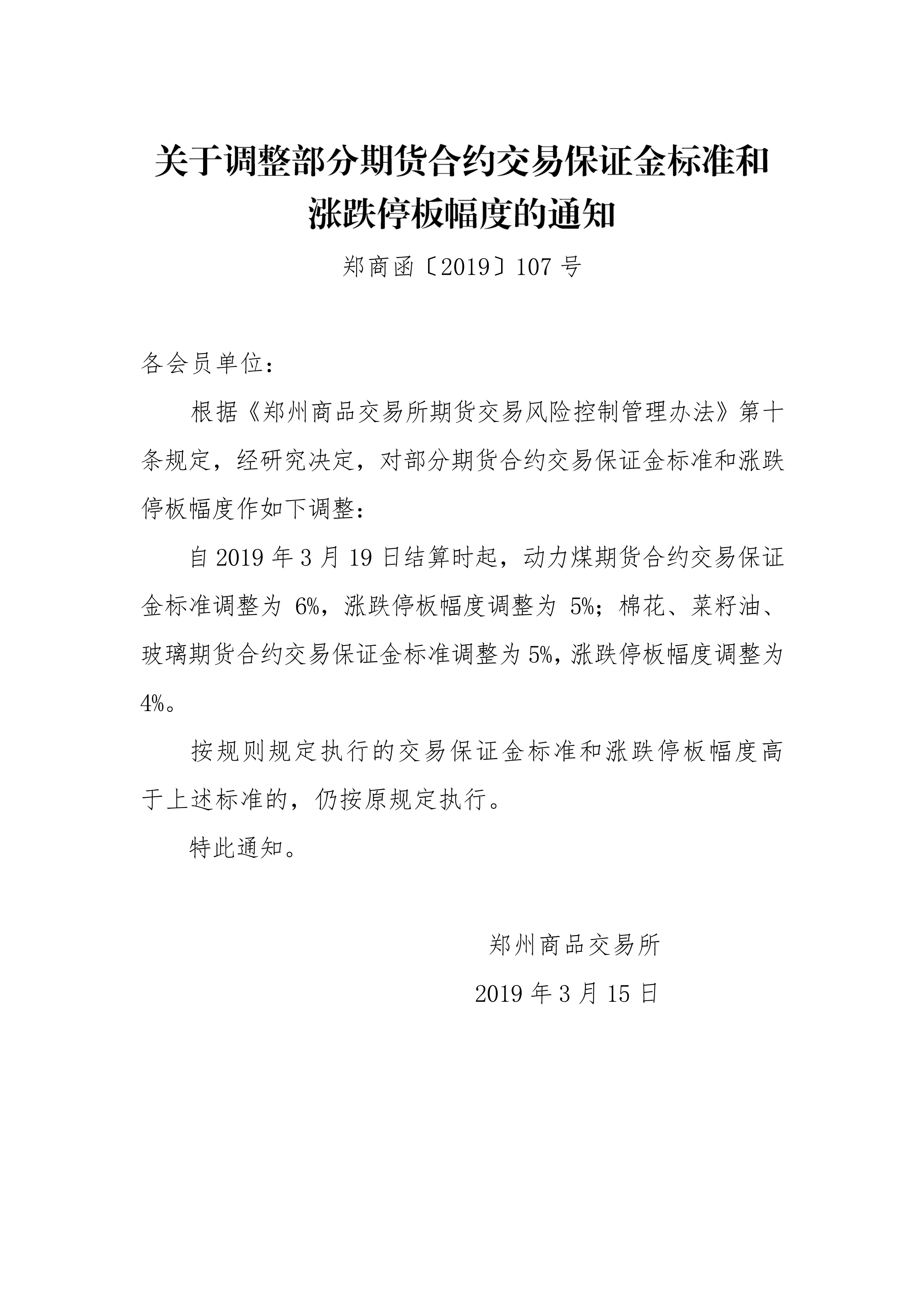 (郑商所)关于调整部分期货合约交易保证金标准和涨跌停板幅度的通知