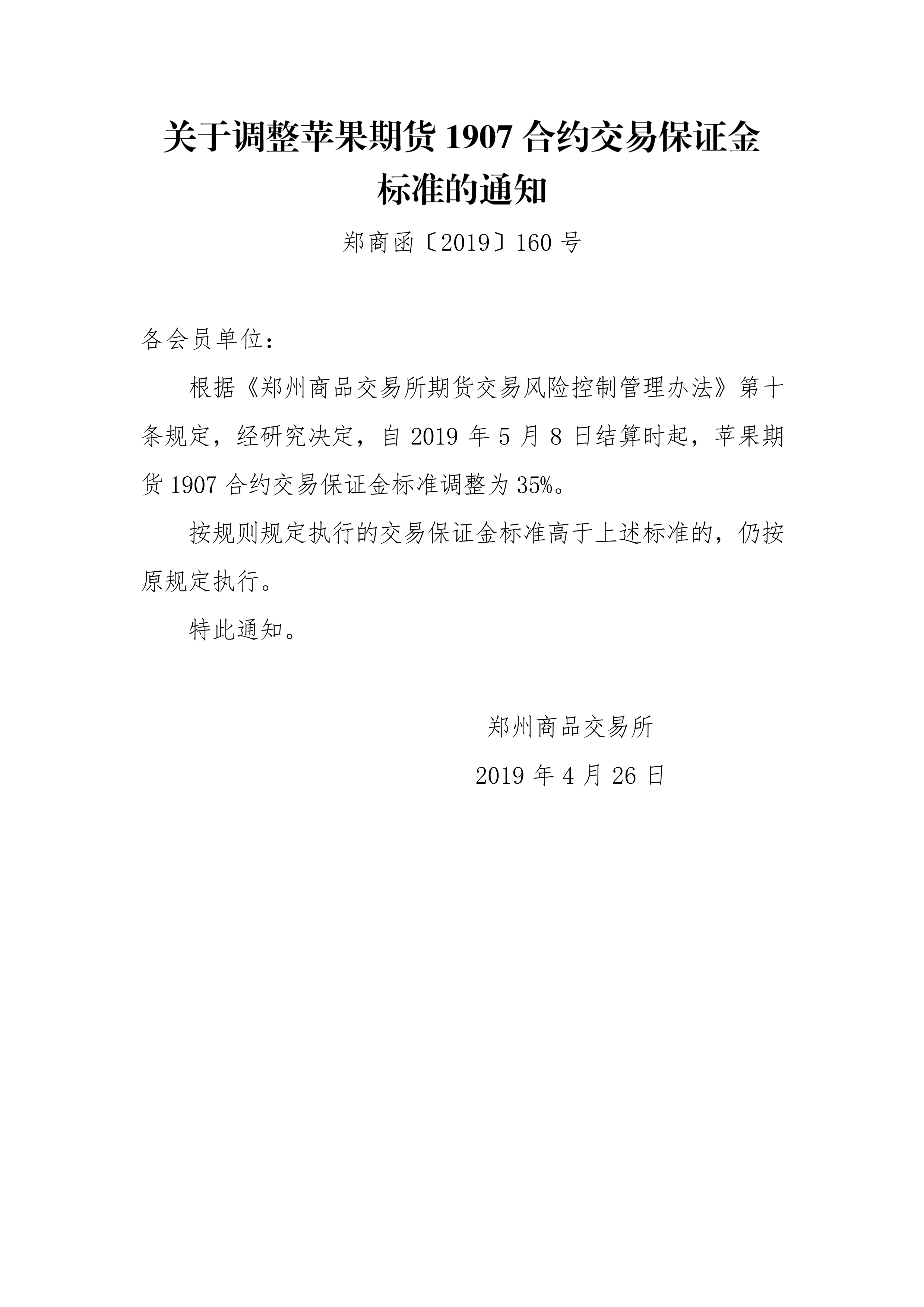 (郑商所)关于调整苹果期货1907合约交易保证.标准的通知