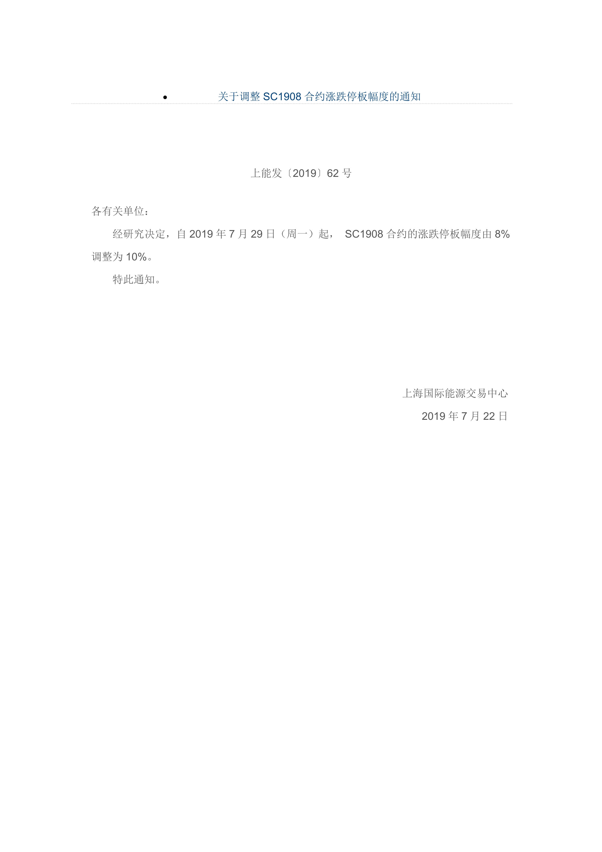 (能源中心)关于调整SC1908合约涨跌停板幅度的通知