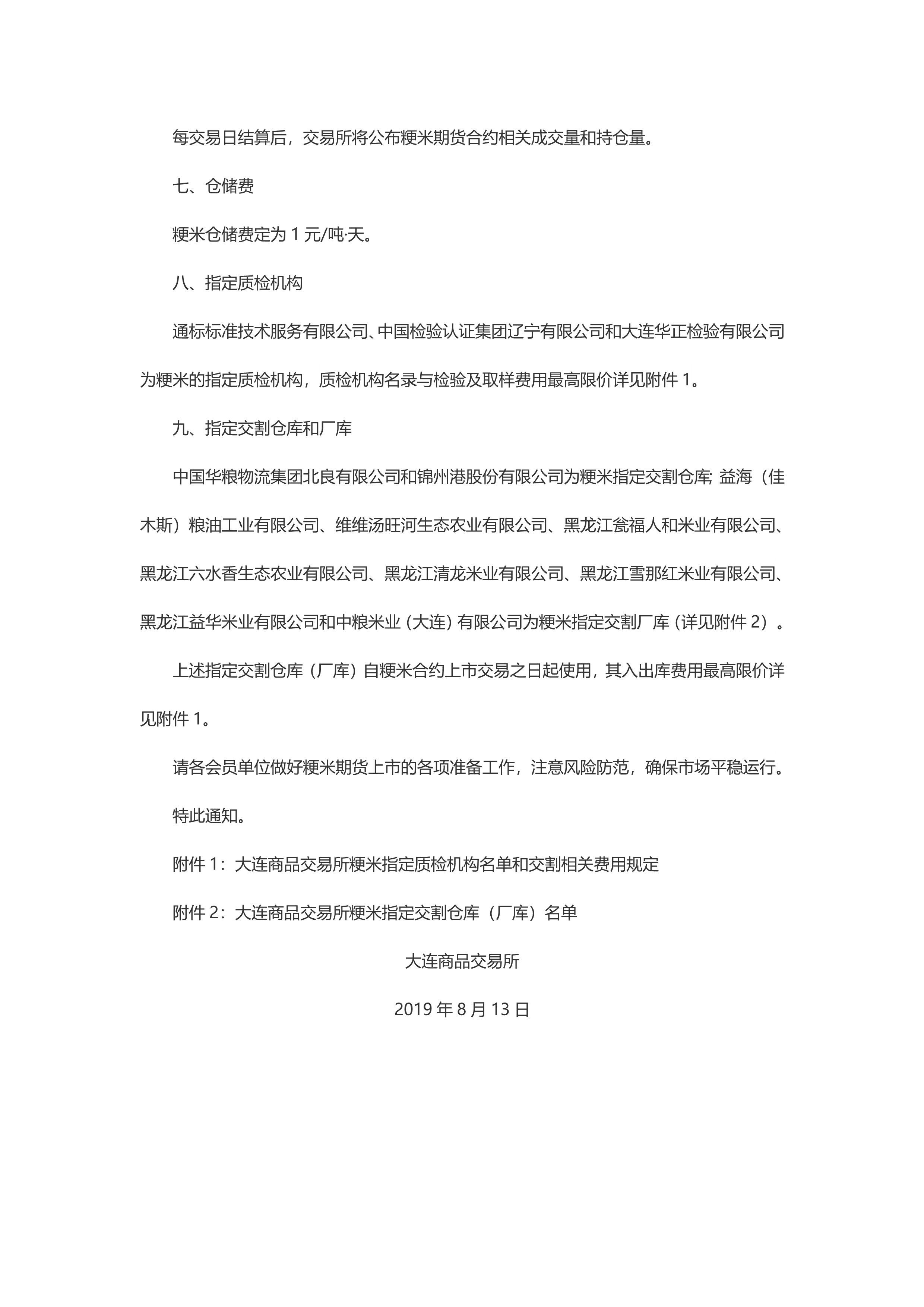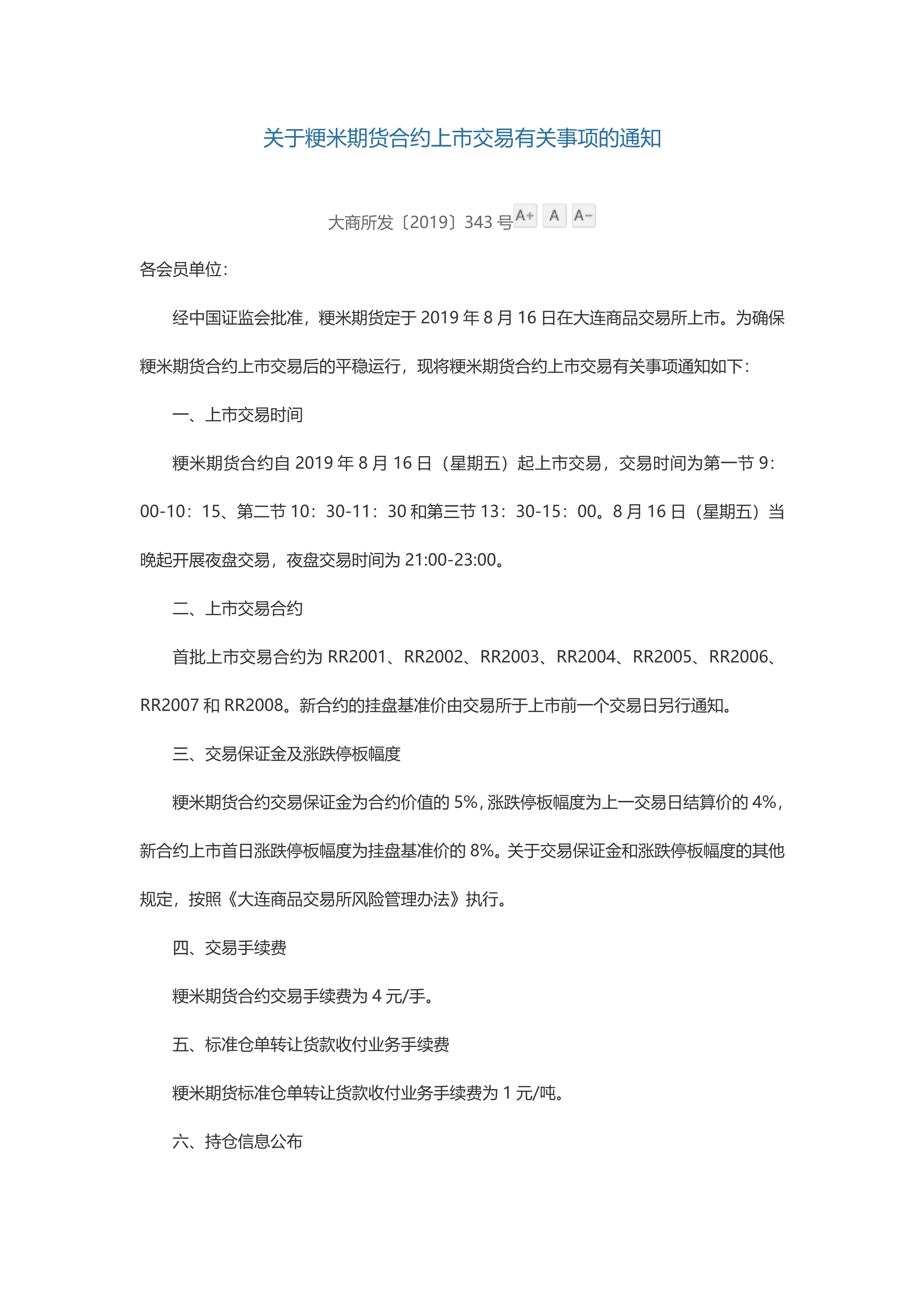 关于粳米期货合约上市交易有关事项的通知