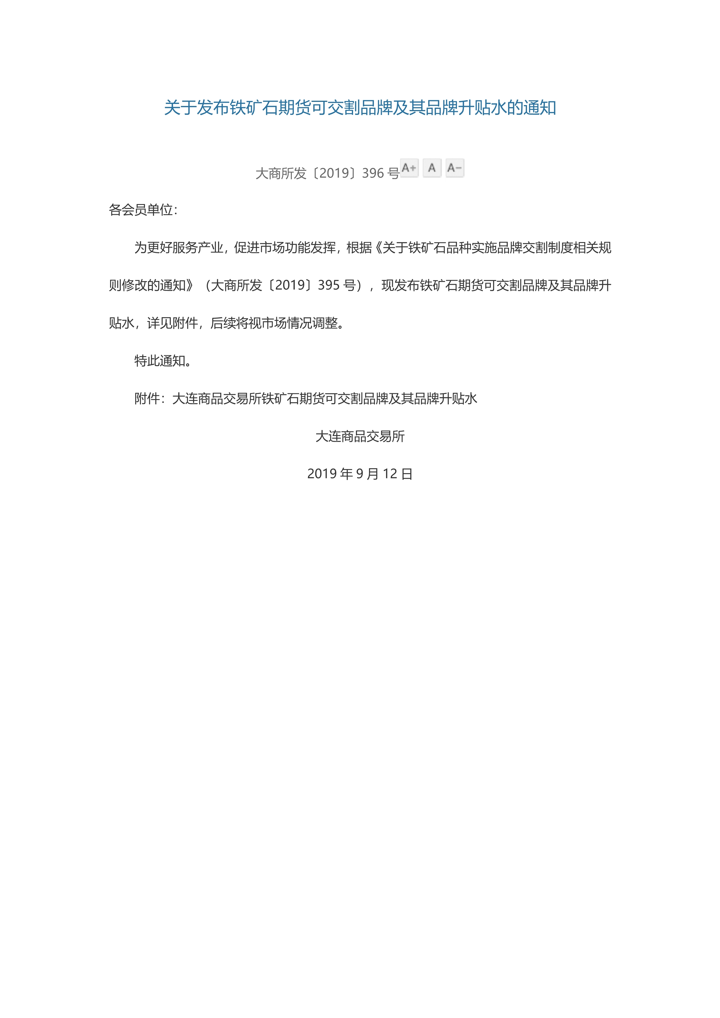 关于发布铁矿石期货可交割品牌及其品牌升贴水的通知