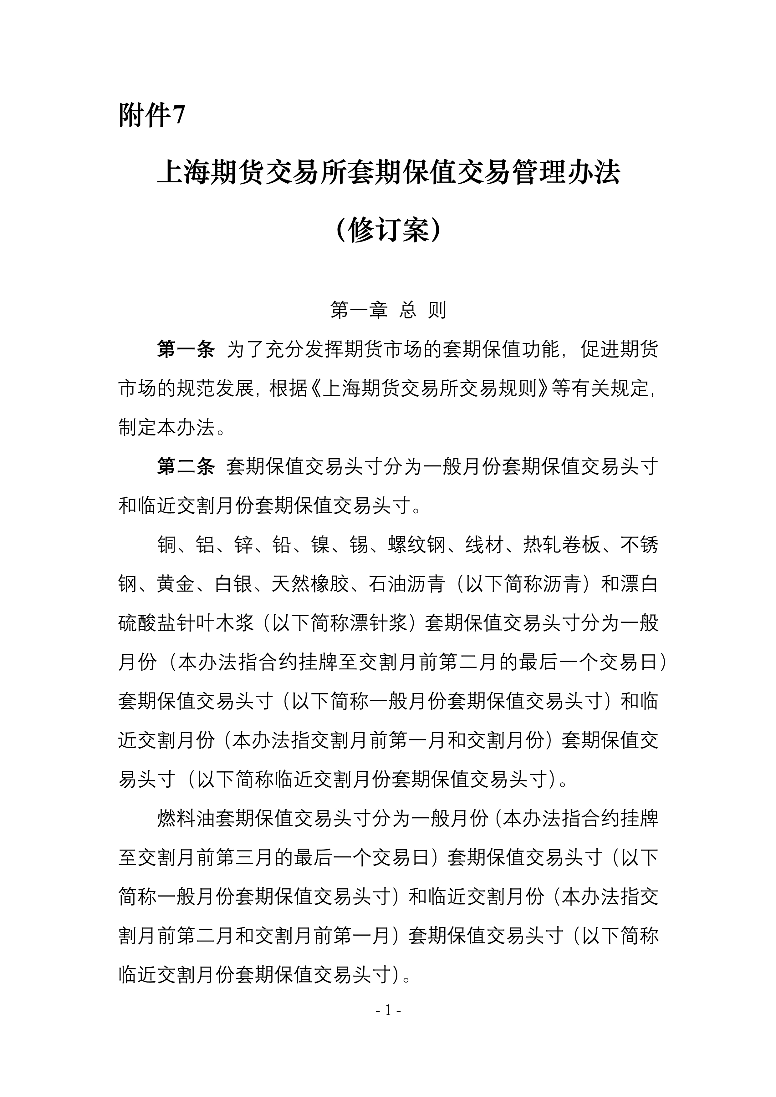 7. 《上海期货交易所套期保值交易管理办法(修订案)》
