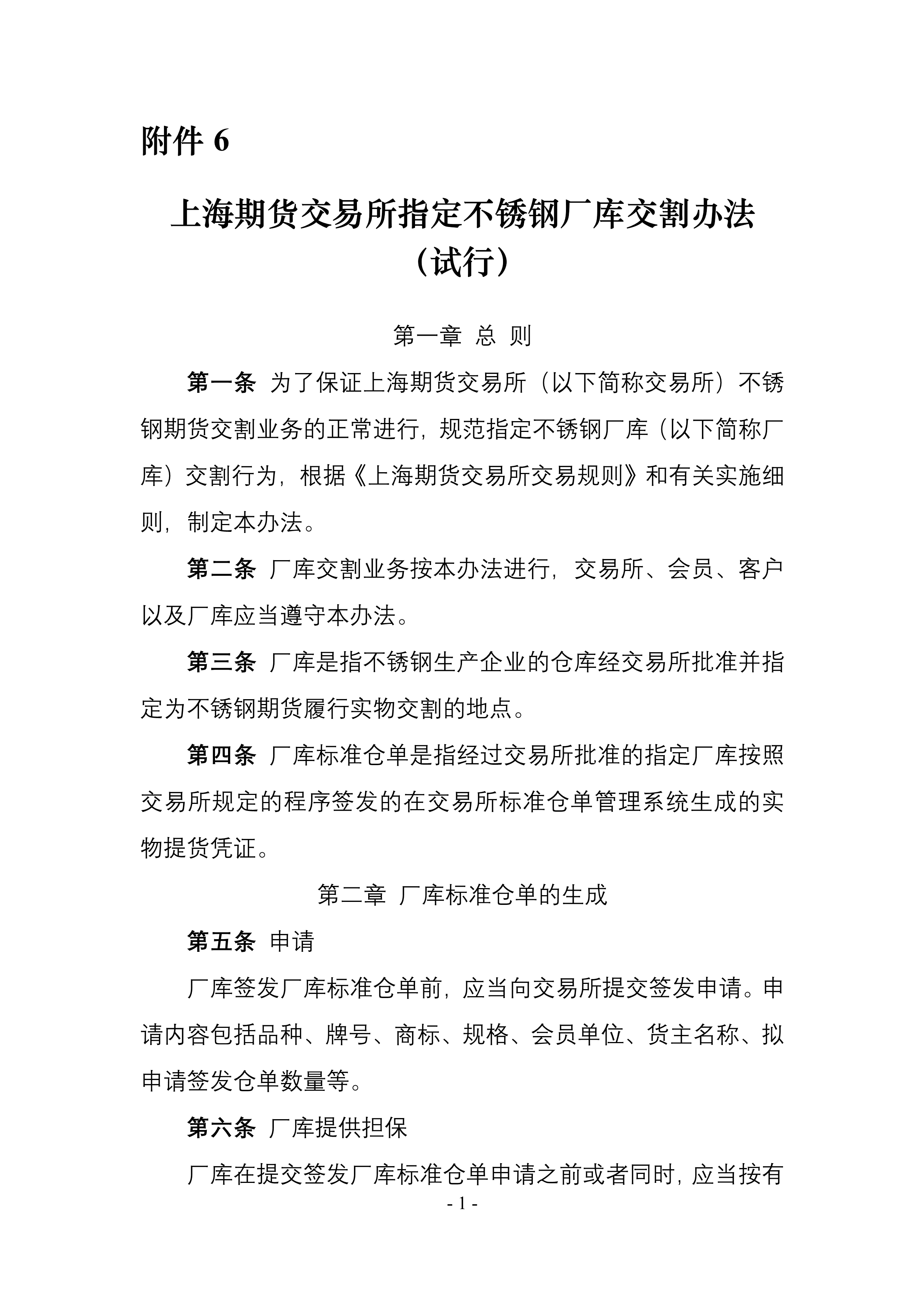 6. 《上海期货交易所指定不锈钢厂库交割办法(试行)》