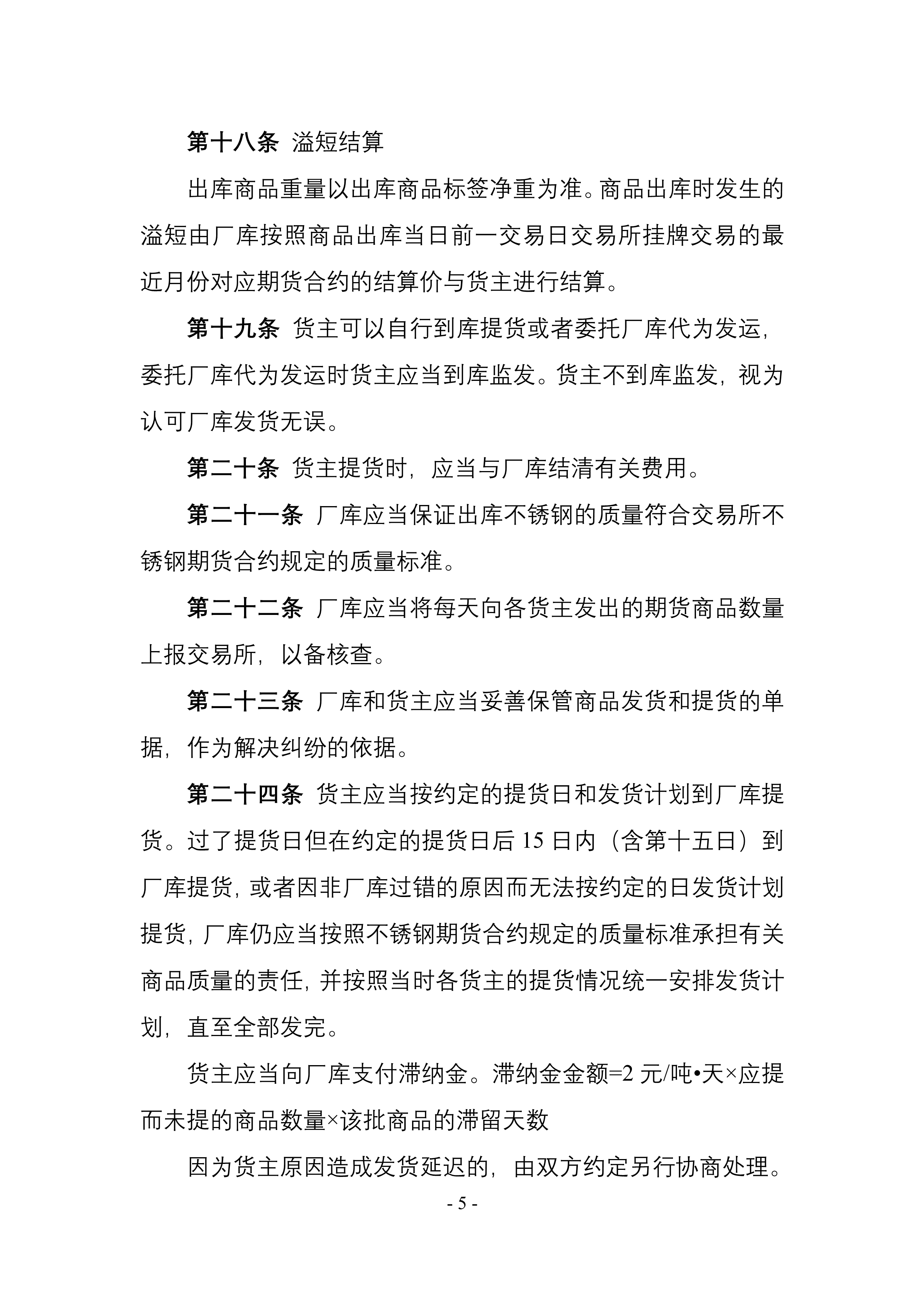5. 《上海期货交易所标准仓单管理办法(修订案)》