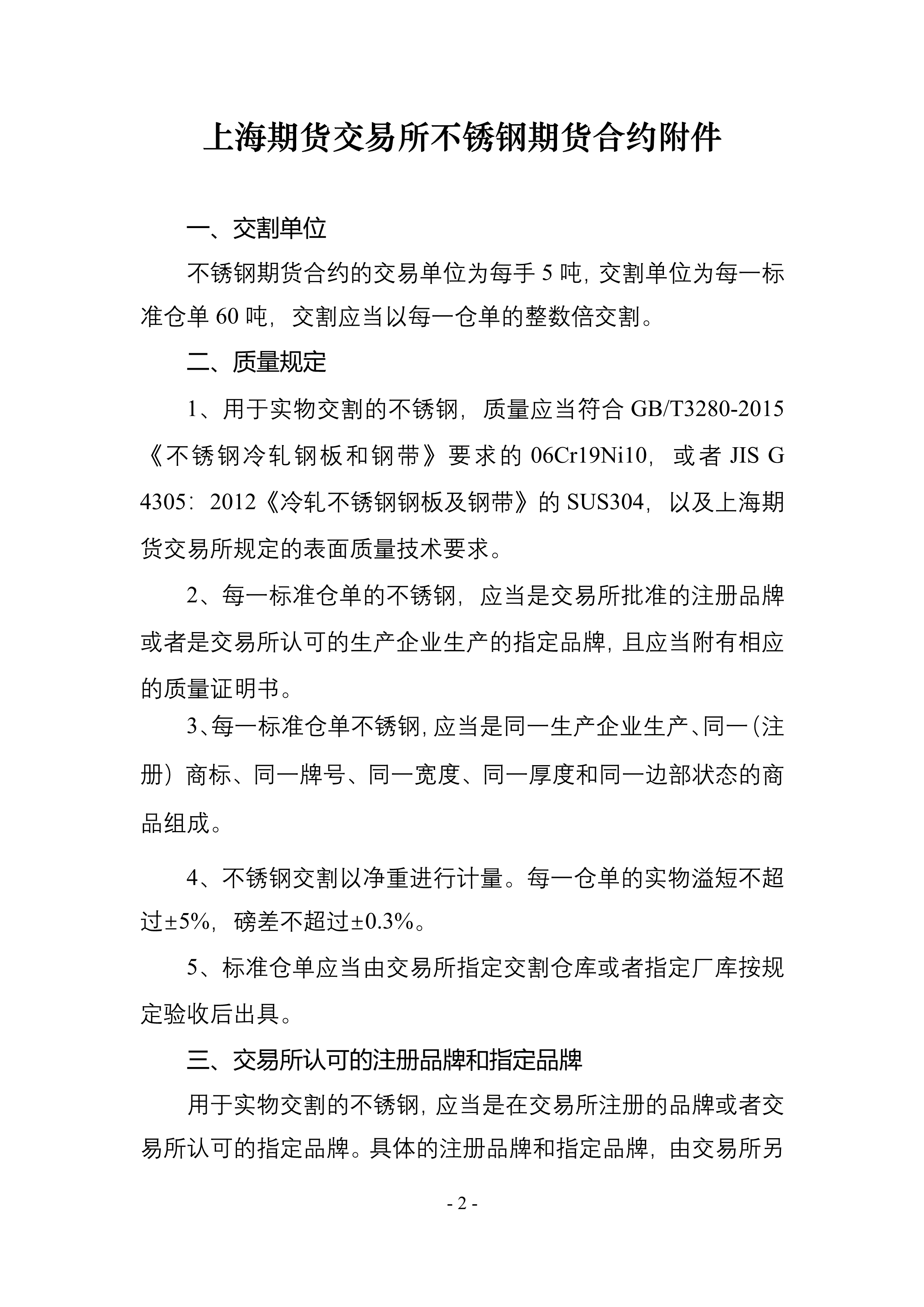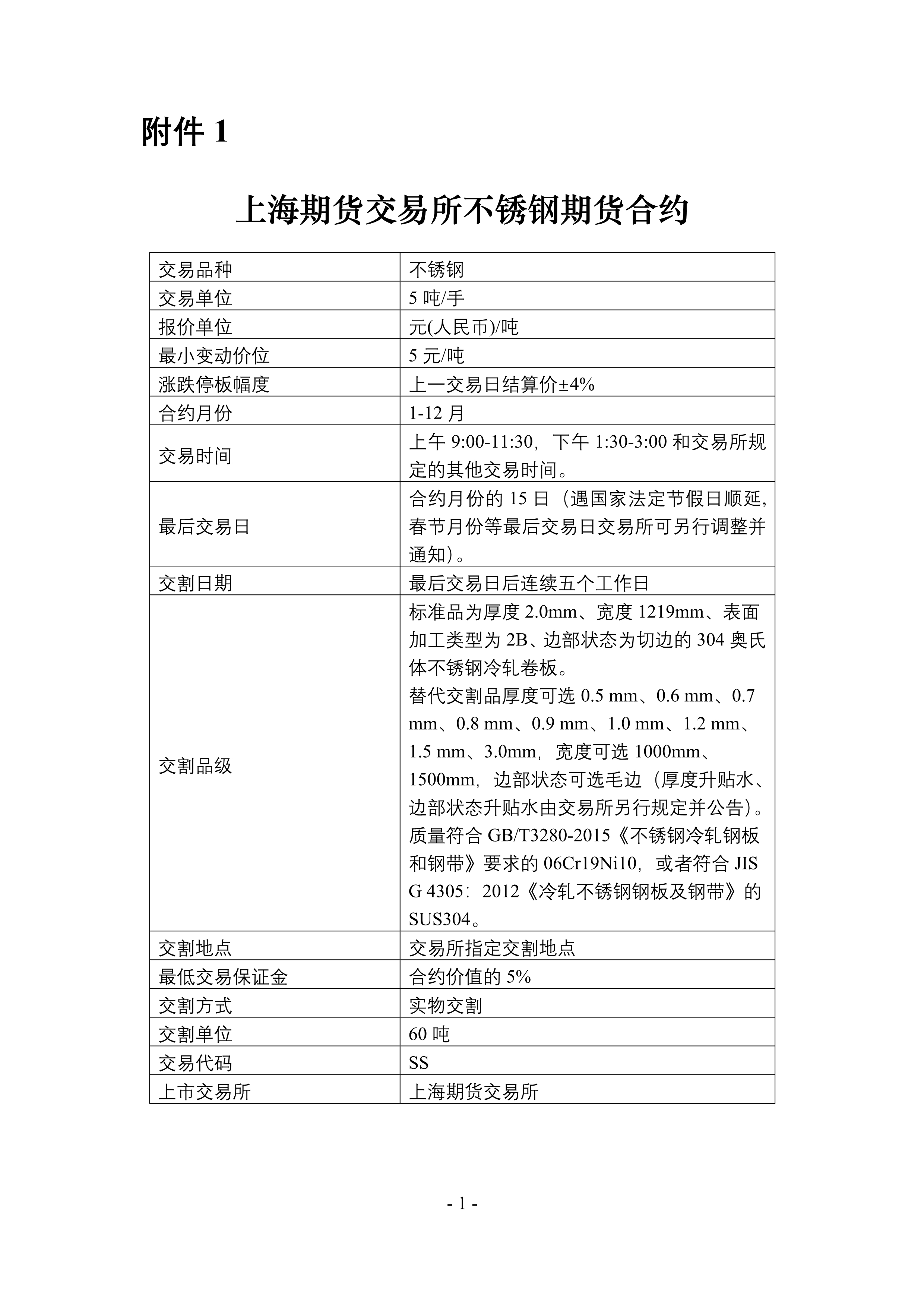 1. 《上海期货交易所不锈钢期货合约》