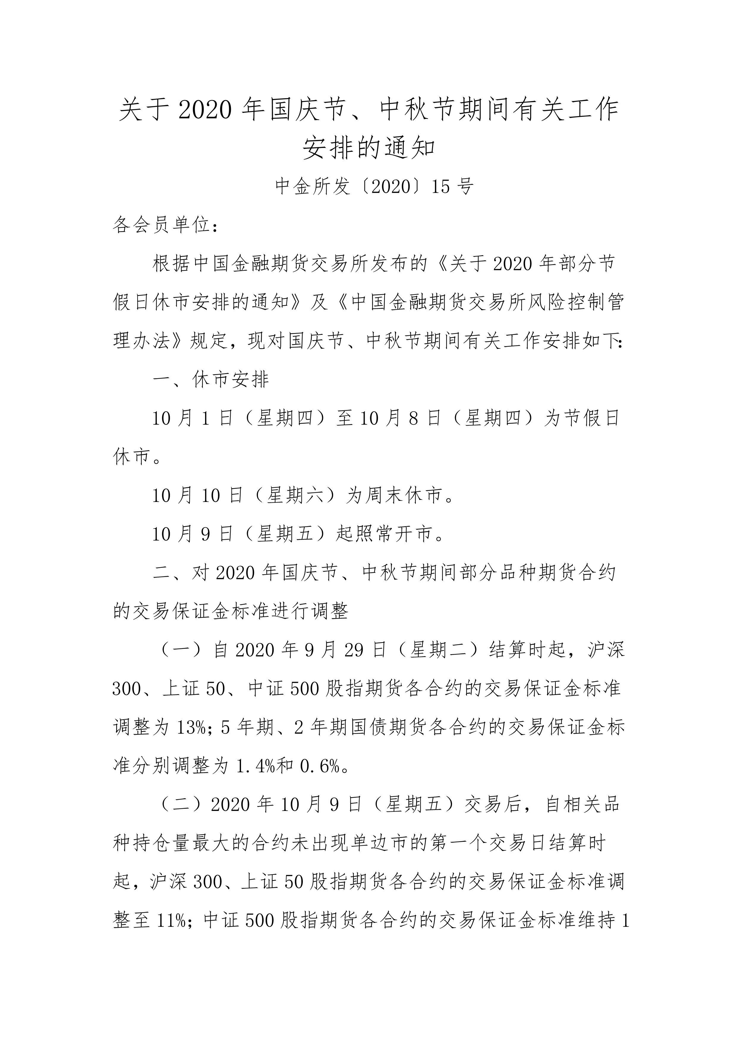 关于2020年国庆节、中秋节期间有关工作安排的通知