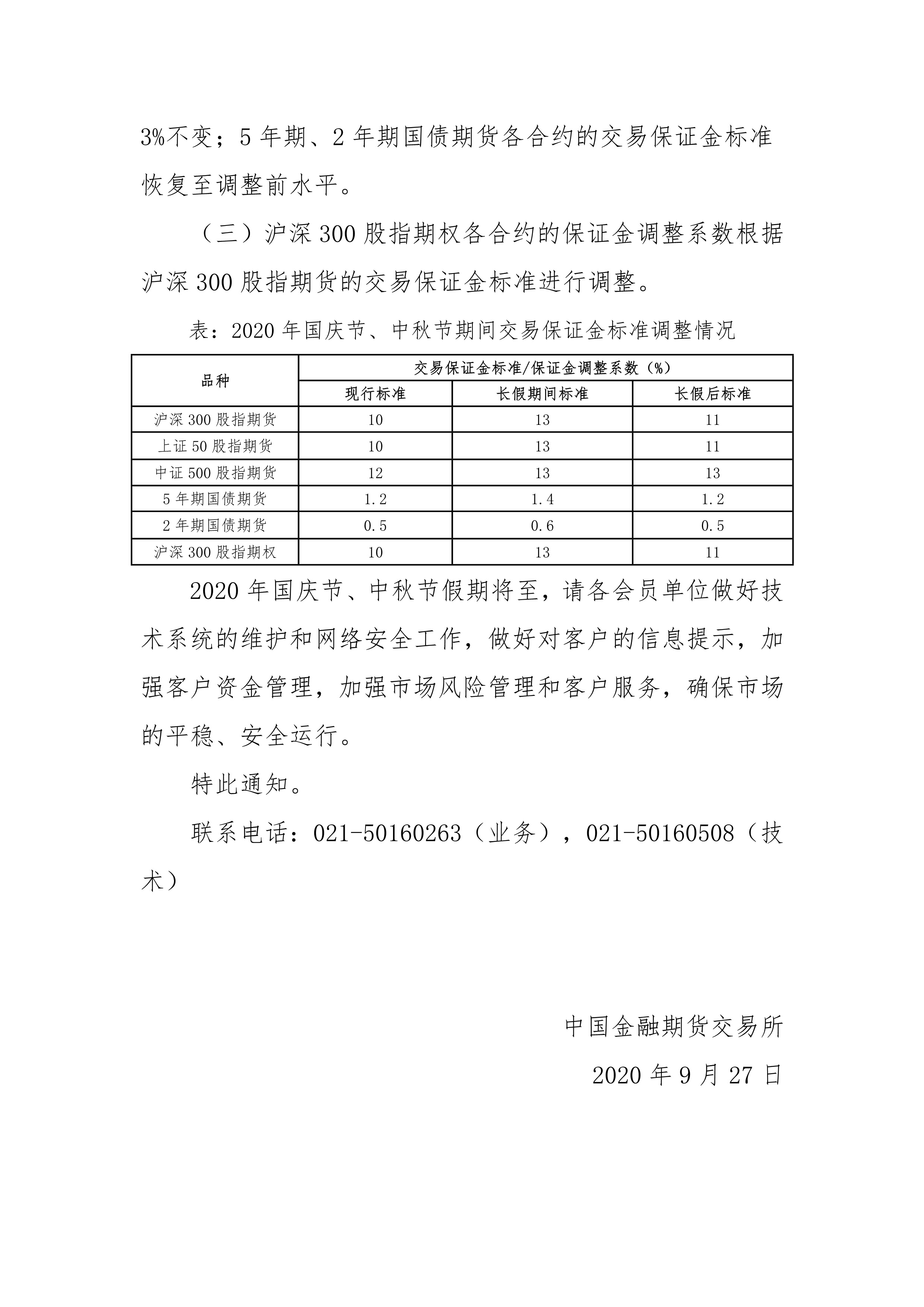 红塔期货有限责任公司关于2020年中金所国庆节期间有关事项的通知