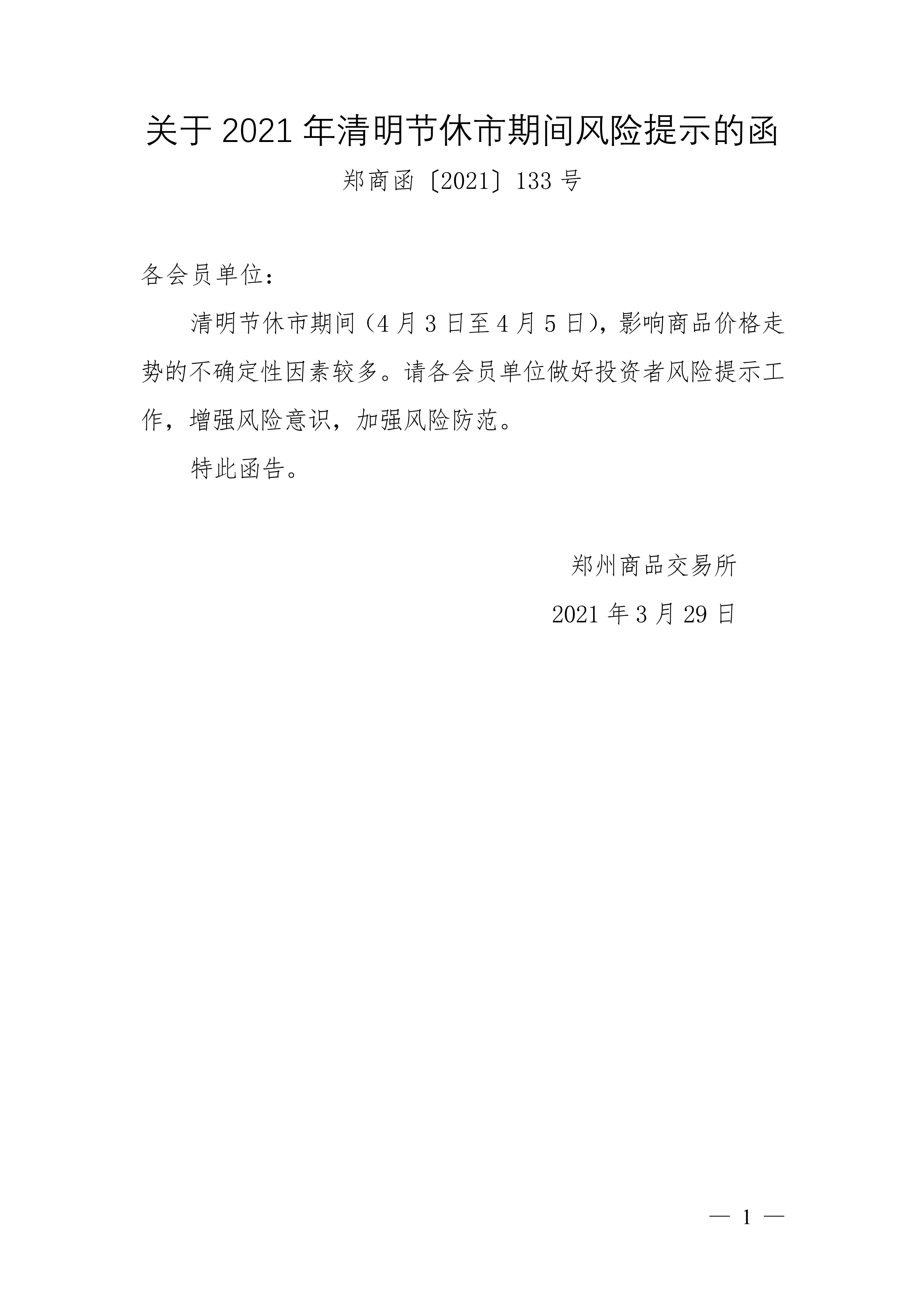 大商所关于2021年清明节期间夜盘交易时间提示的通知