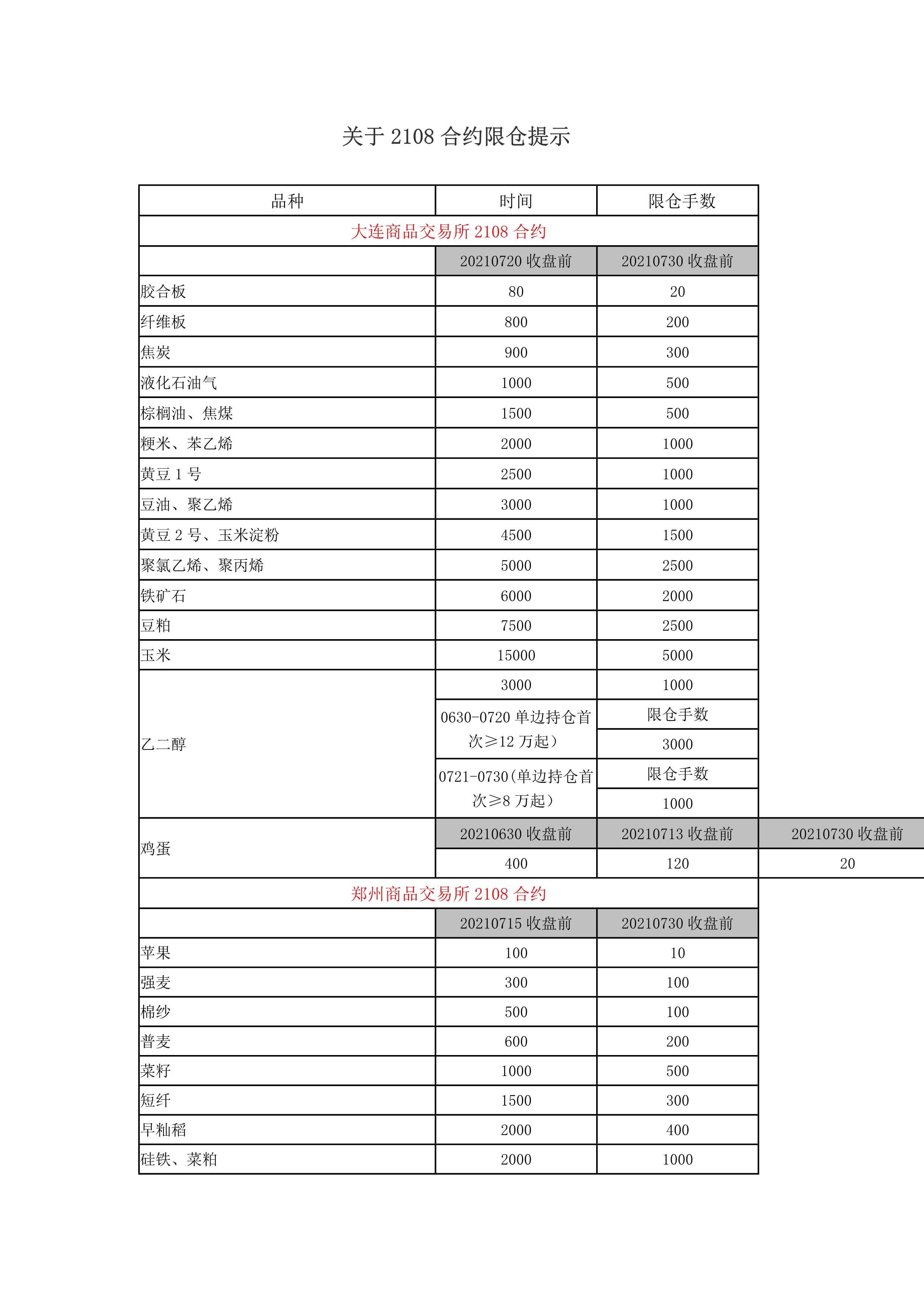 关于2108合约限仓提示