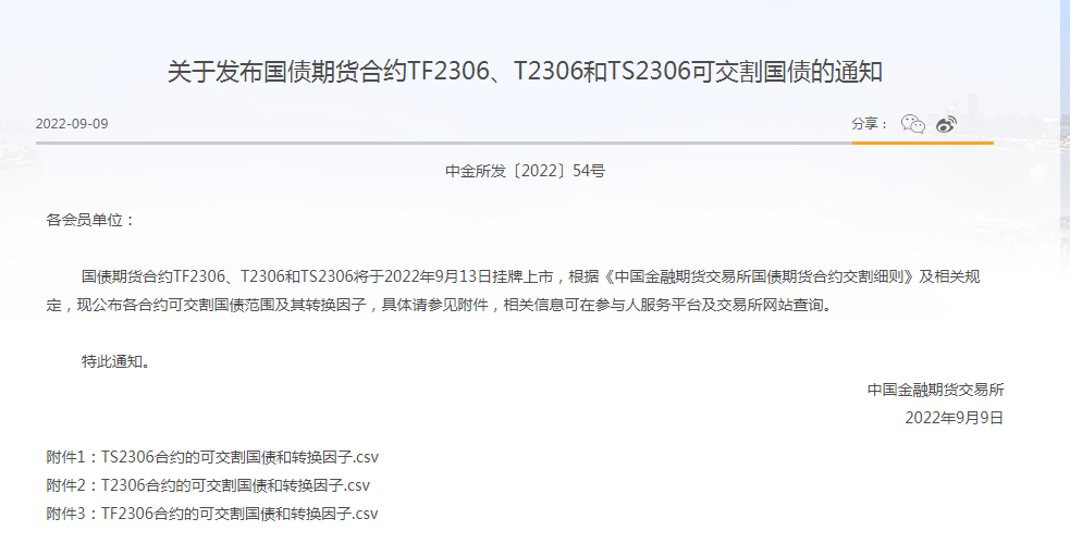 (中金所)关于发布国债期货合约TF2306、T2306和TS2306可交割国债的通知