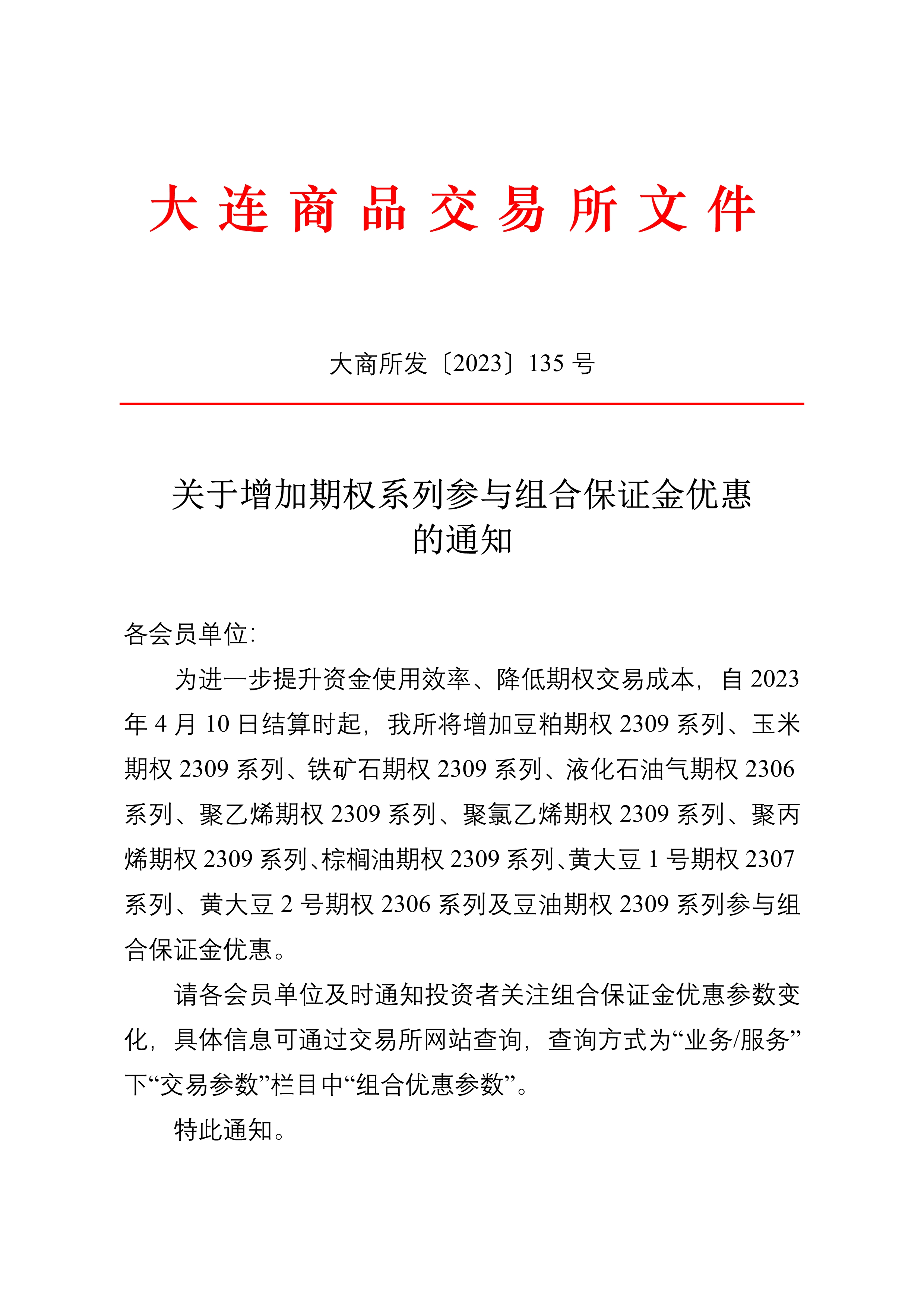 大商所关于增加期权系列参与组合保证金优惠的通知